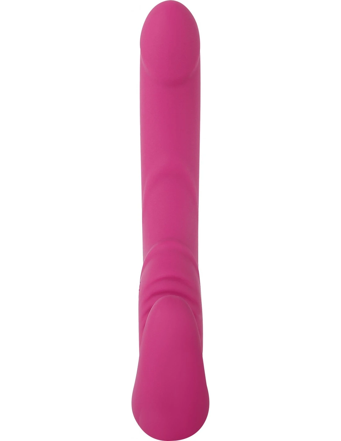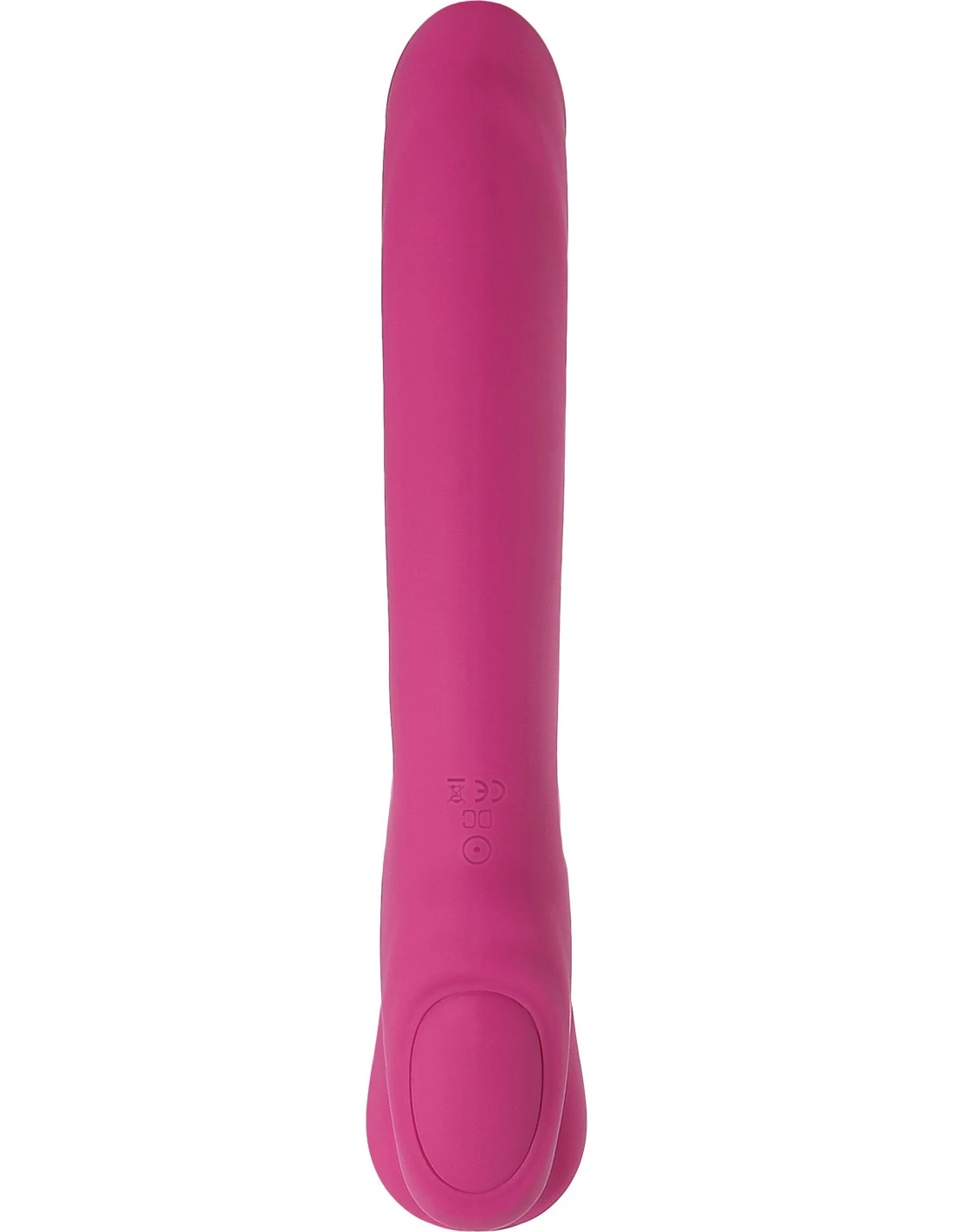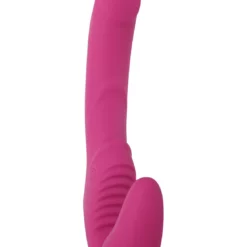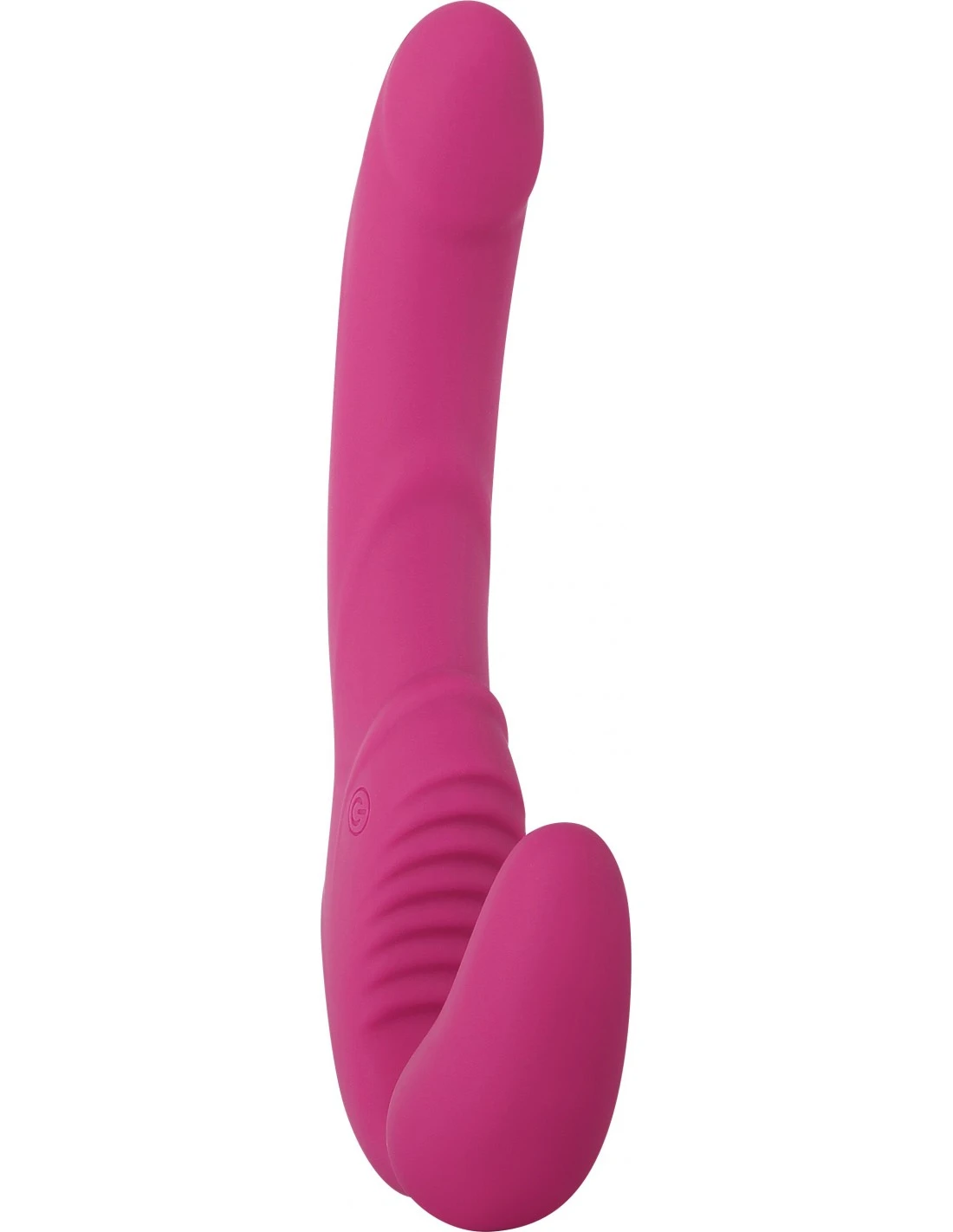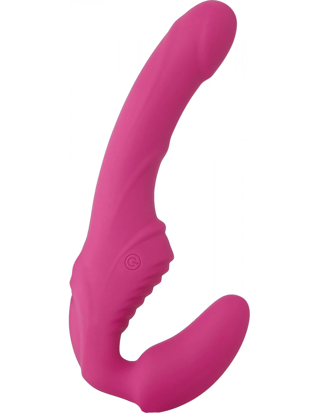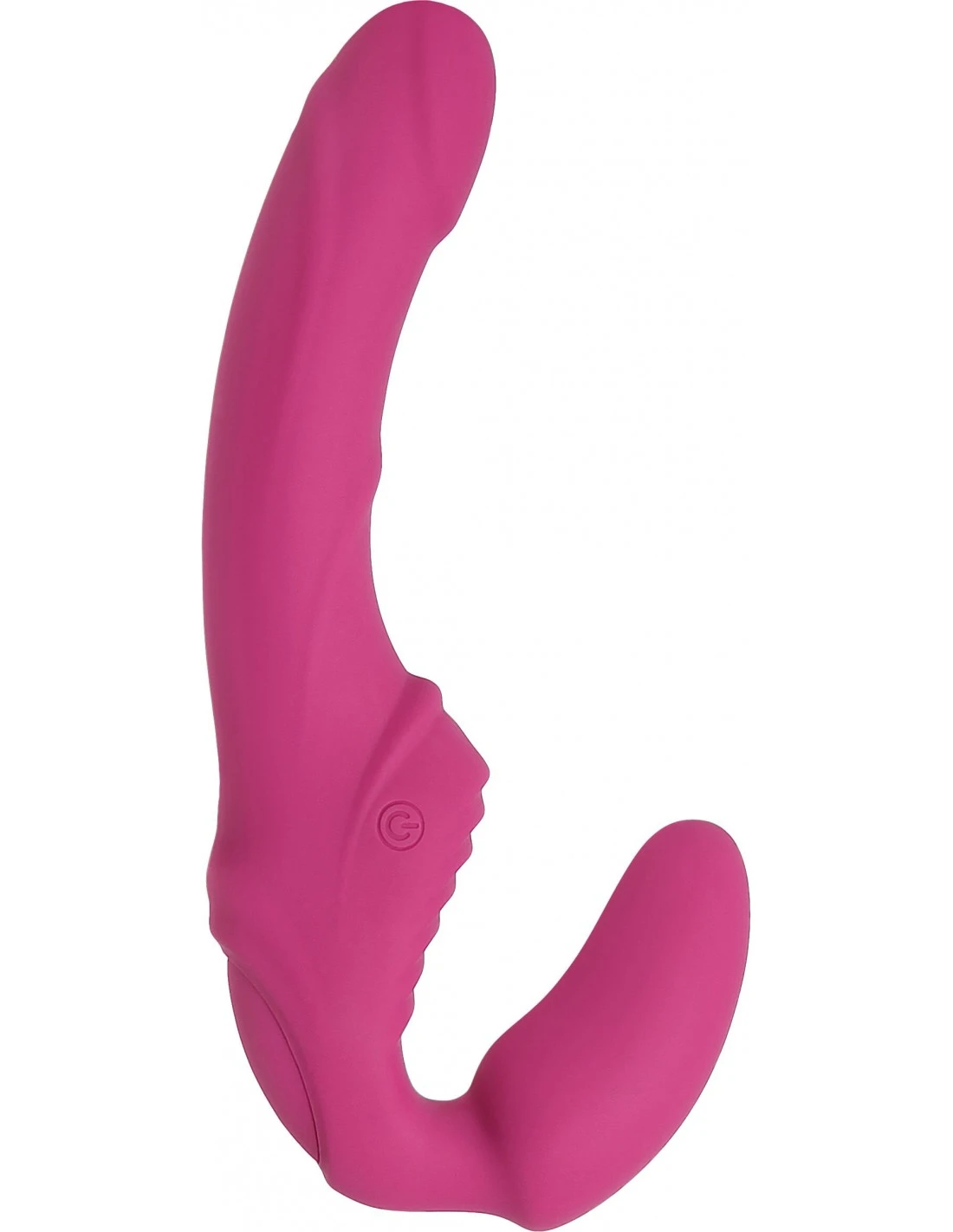 Het bolvormige uiteinde van deze oplaadbaar strapless strap-on glijdt in haar vagina om haar te laten genieten van vibrerende G-spot stimulatie met een lengte in haar van 8 cm en 3.9 cm breed.