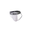Een sexy wetlook string met dubbele drukknoopsluiting aan de voorkant.