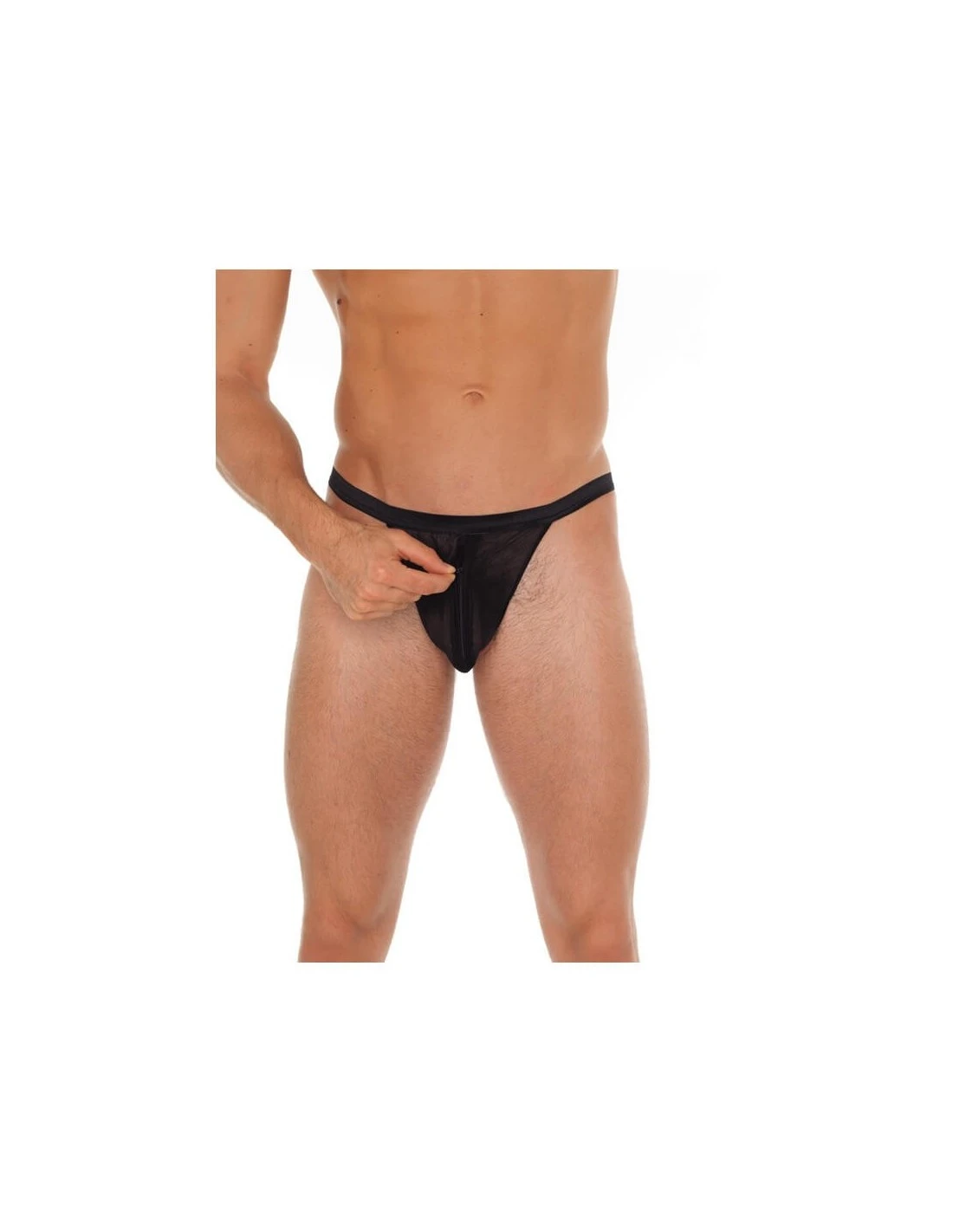 Zwarte heren string met rits van het merk Amorable.