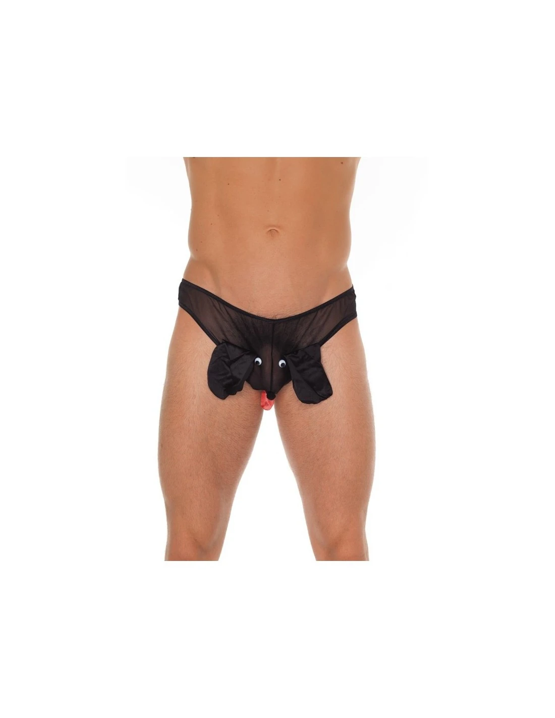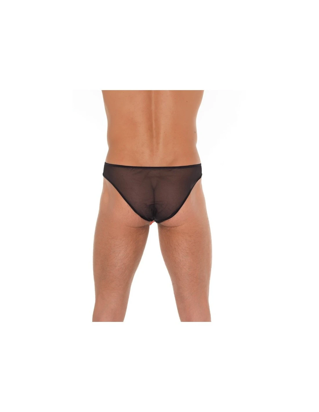 De slip is verder gemaakt van een zwarte doorschijnende stof.