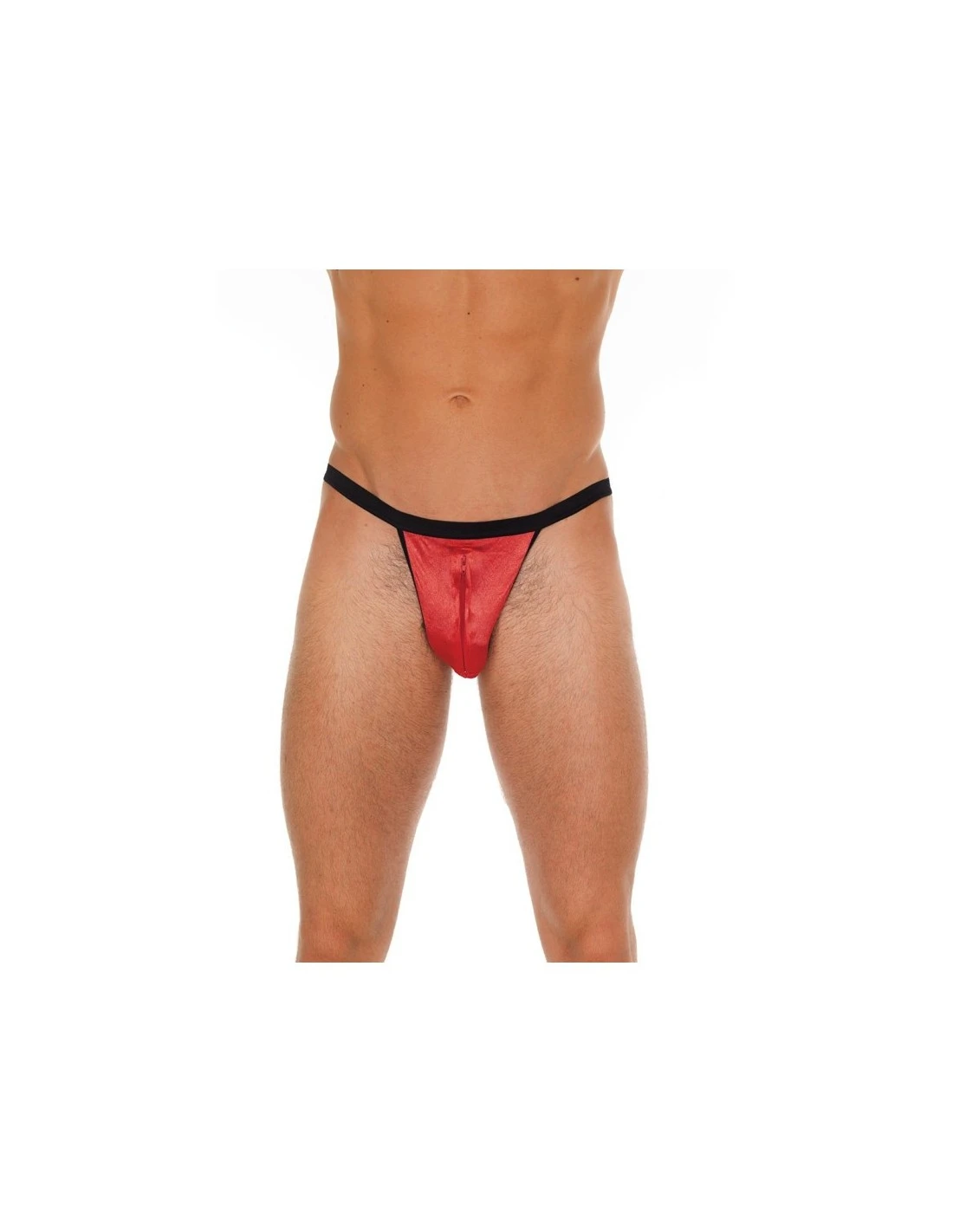Deze rode mannen string heeft een rits aan de voorkant voor een spannend effect.