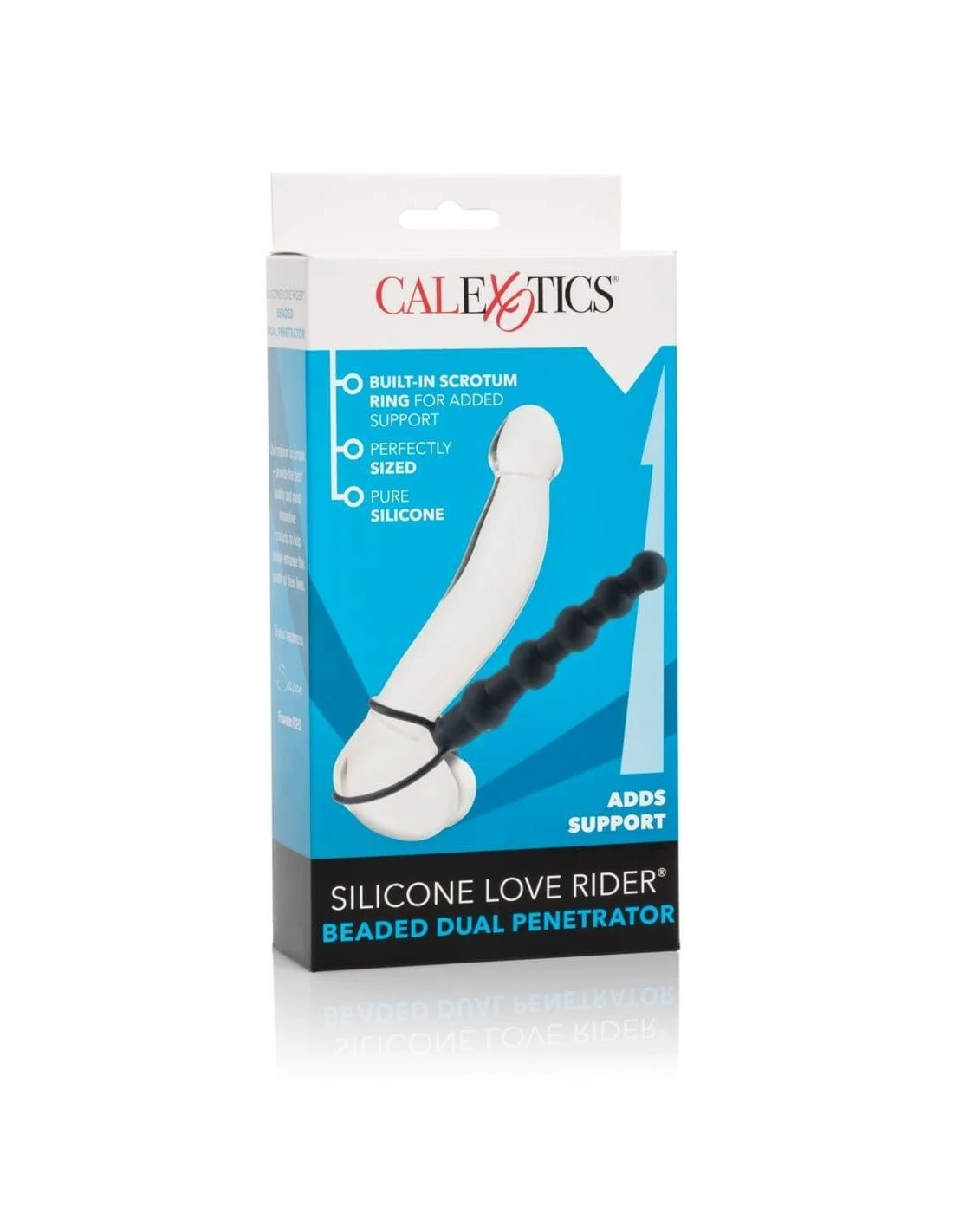 De Dual Penetrator heeft rekbare, comfortabele lussen waar de penis ingeschoven kan worden voor ondersteuning.