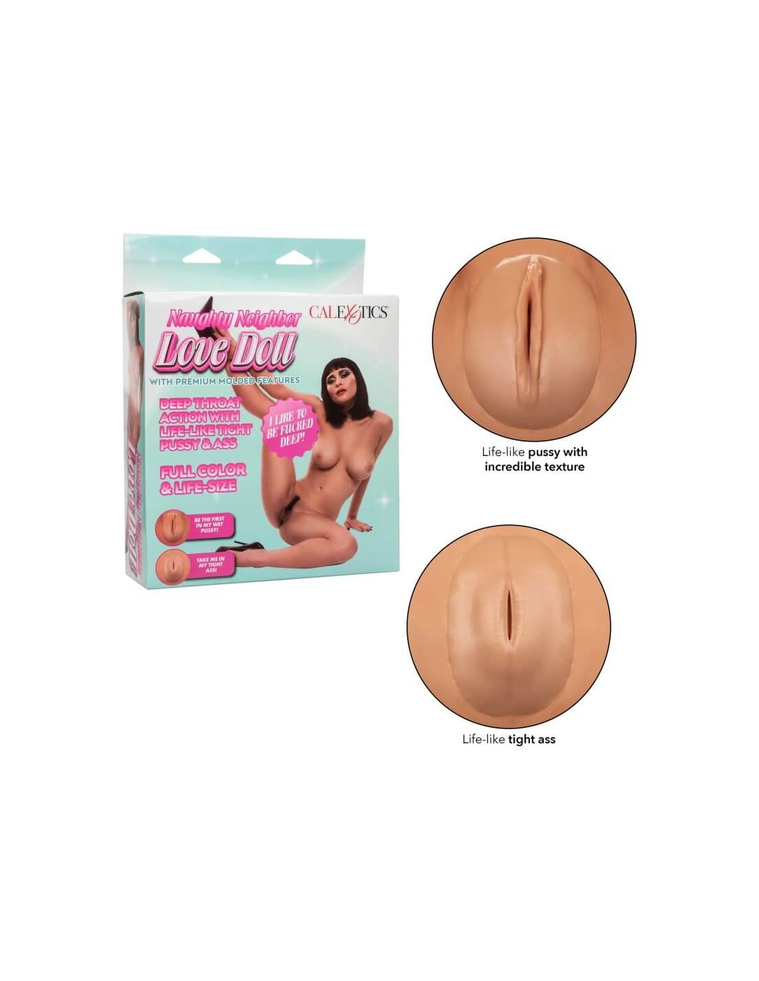 Spreid die benen en duik diep in je stoutste fantasie met de CalExotics Naughty Neighbor Love Doll.