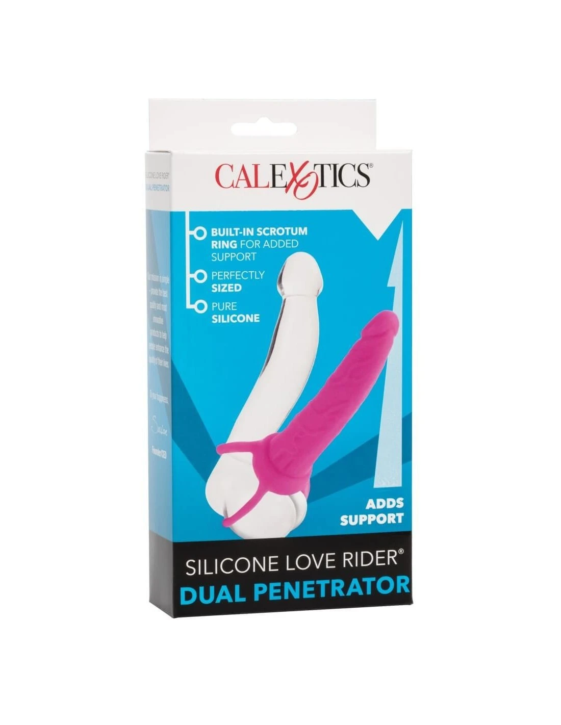 De Dual Penetrator heeft rekbare, comfortabele lussen waar de penis ingeschoven kan worden voor ondersteuning.