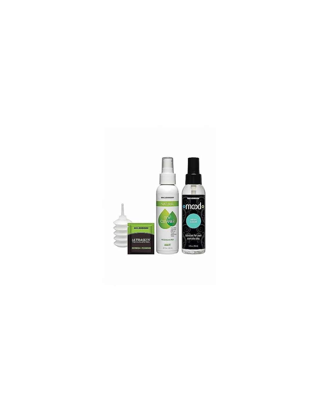 De Vac-U-Lock™ Dual Density Starter Set bevat ook Doc Johnson® Natural Toy Cleaner en ULTRASKYN™ Refresh Powder om uw ULTRASKYN™-hulpstukken met dubbele dichtheid goed en hygiënisch te onderhouden.