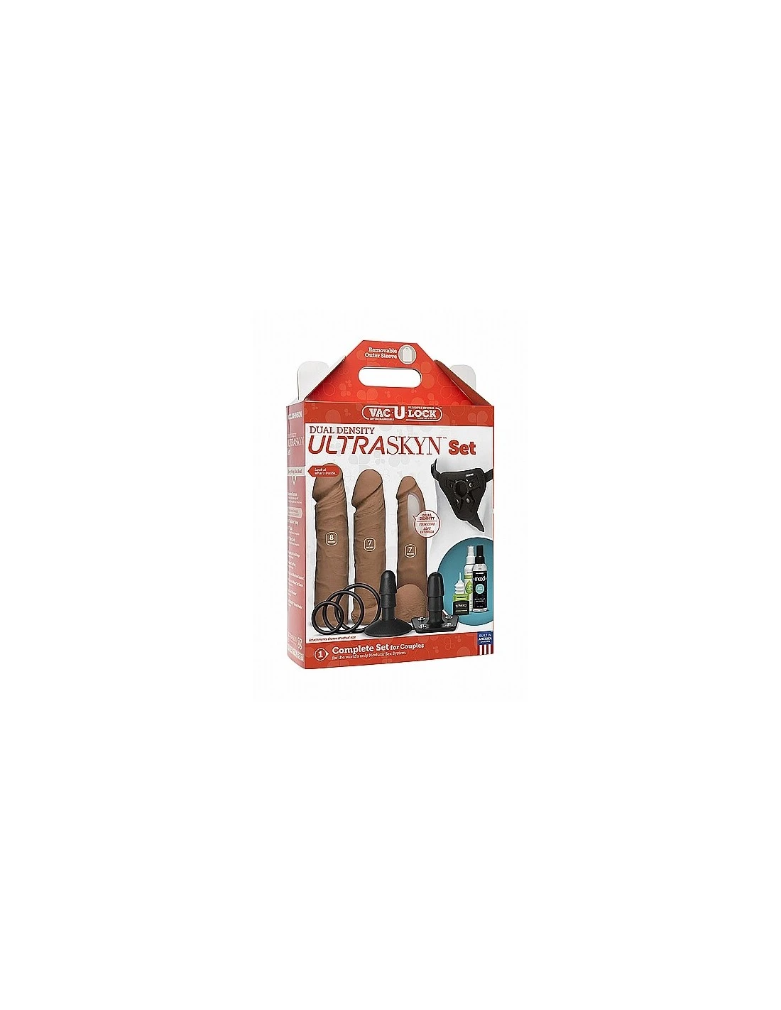 De Vac-U-Lock Dual Density ULTRASKYN™-set is een solide investering voor het upgraden of beginnen van uw collectie voorbindaccessoires, en biedt meerdere opties in één doos via een compleet harnas met verwijderbare o-ringen en plug, drie ULTRASKYN™-bevestigingen en een flesje Mood glijmiddel op waterbasis.