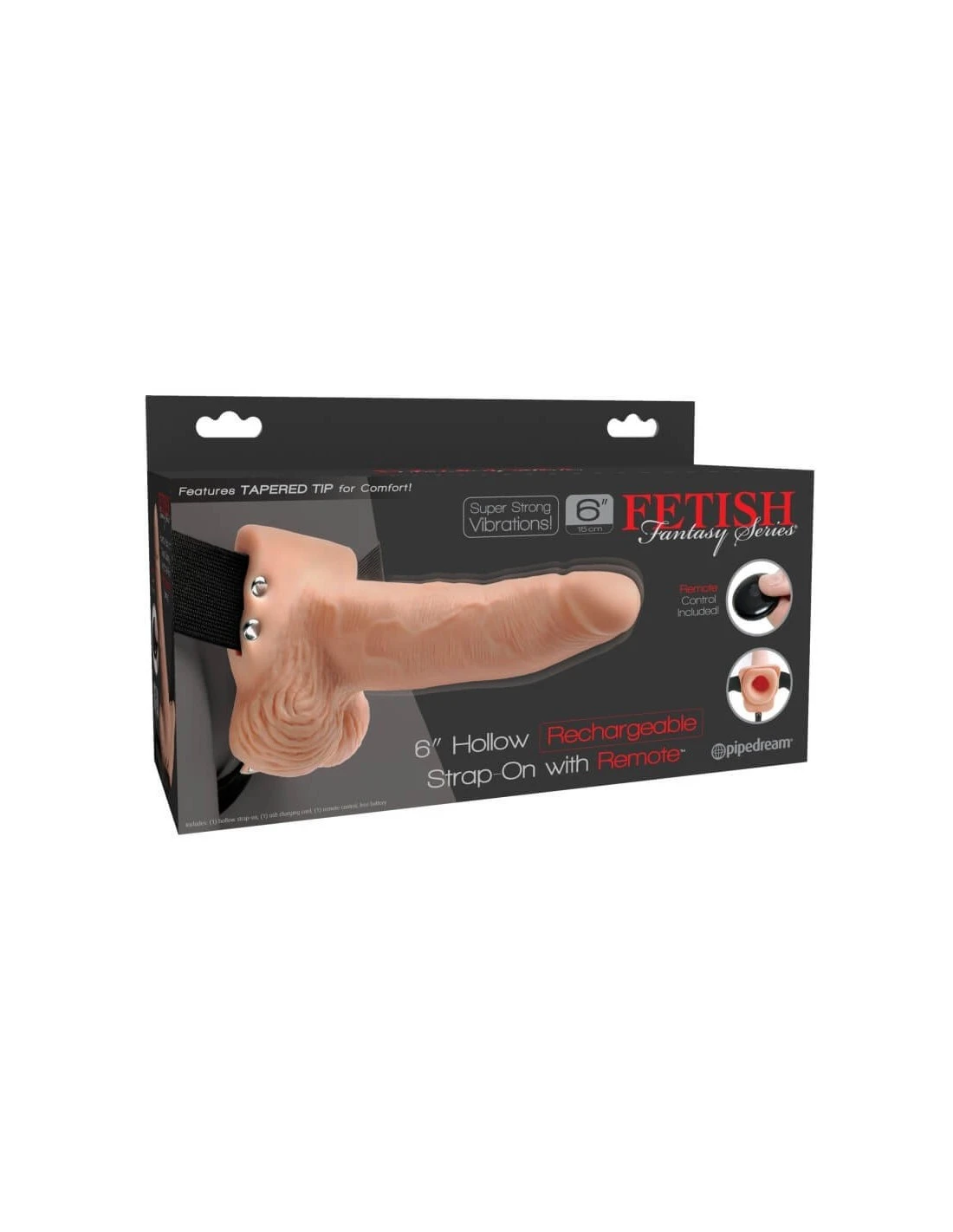 De 6” Hollow Rechargeable Strap-On with Remote is een harnas met een flexibele, holle dildo.