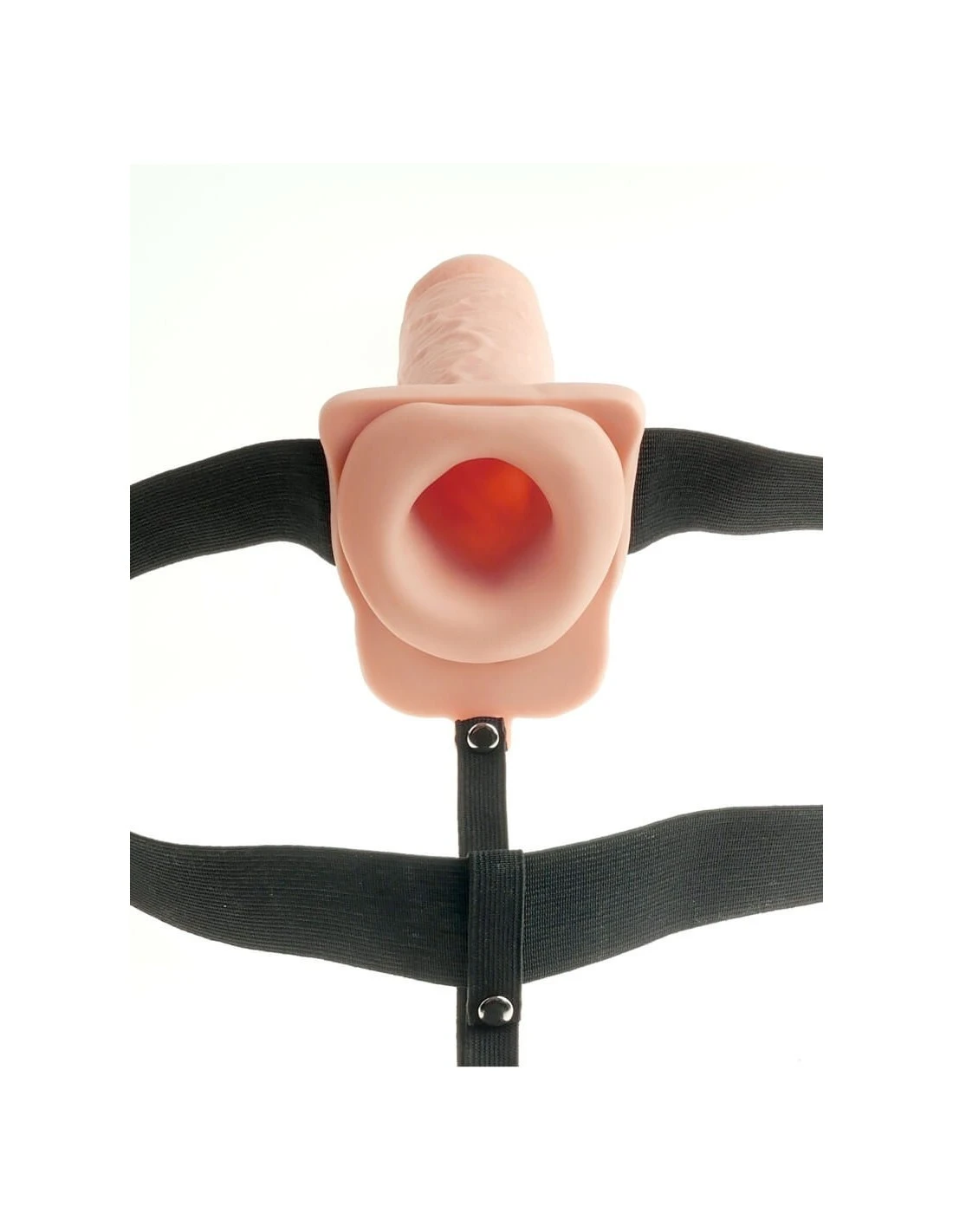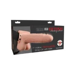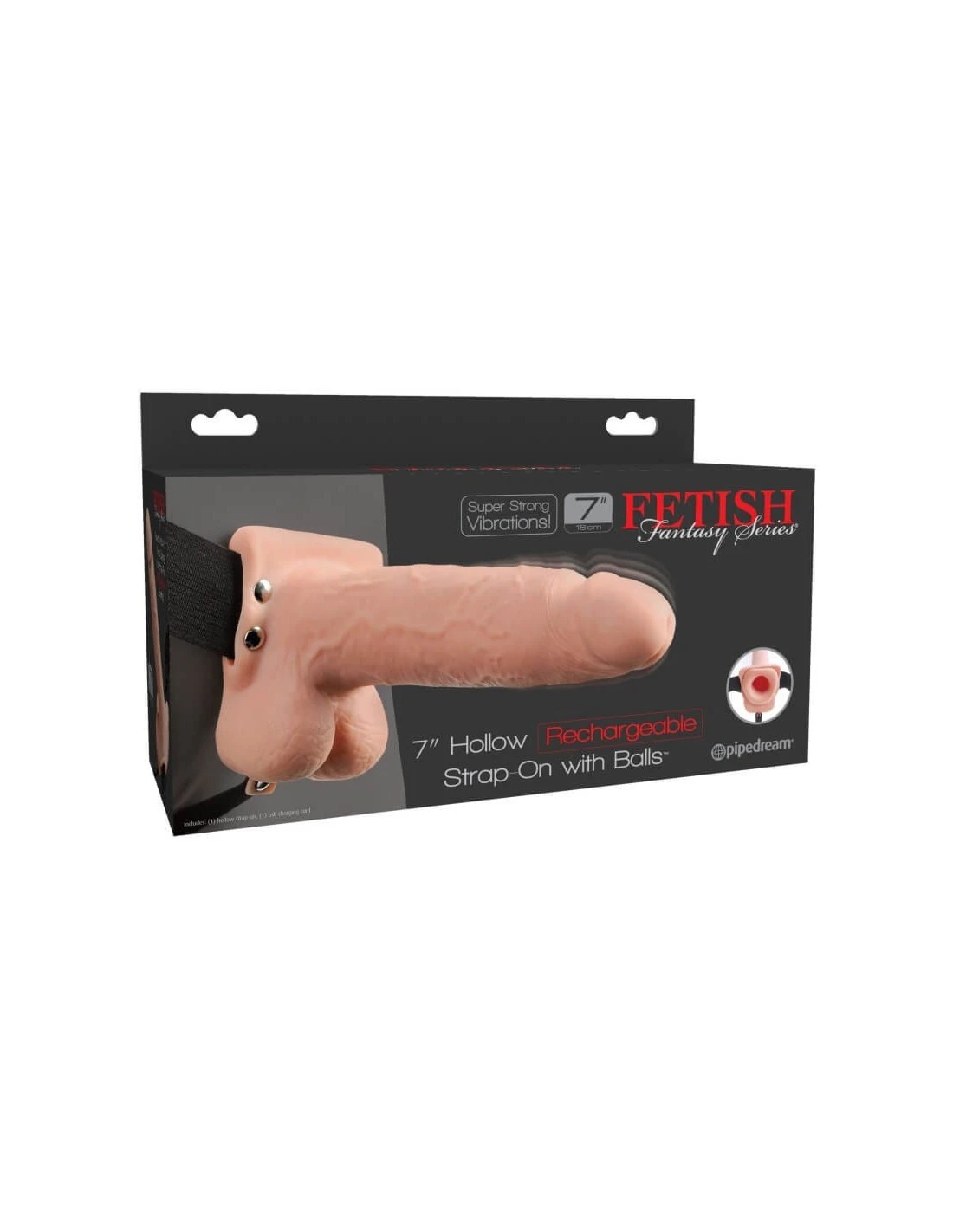 De 7” Hollow Rechargeable Strap-On with Balls is een harnas met een flexibele, holle dildo.