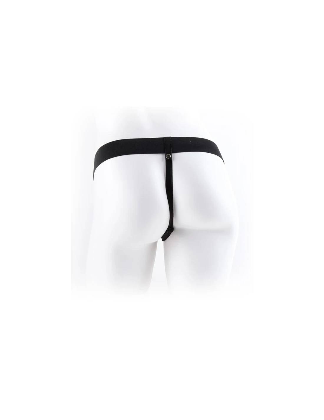 Het harnas bestaat uit een brede elastische heupband en smalle elastische bovenbeenbandjes.