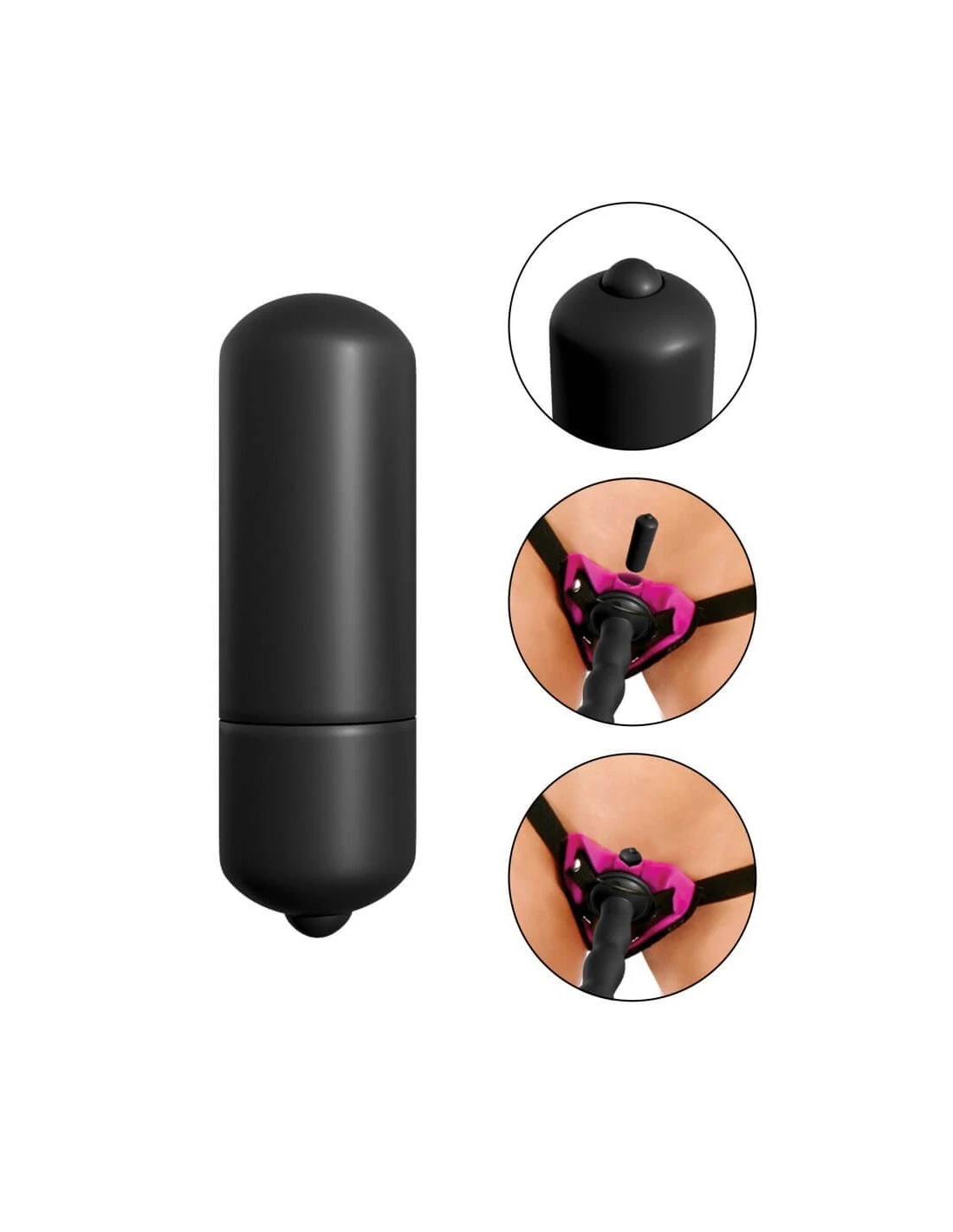 De Fetish Fantasy Vibrating Strap-On Set is een harnas dat wordt geleverd met een flexibele dong en een krachtige bullet-vibe.