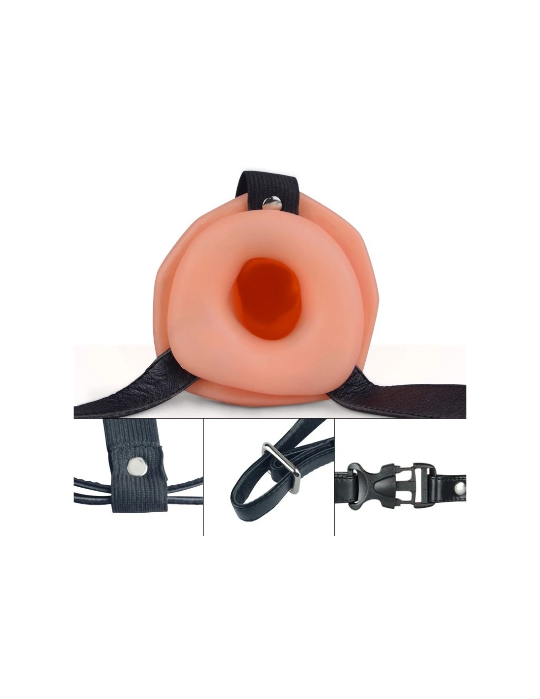 Deze strap-on is hol van binnen en kan door zowel een man als vrouw gedragen worden.