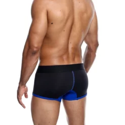 Deze stijl, uit de Avant-Garde-collectie van Male Power, is: Een versterkende “moonshine” met een ondersteunend, versterkend zakje, uitgesneden achterkant, een zijdezachte, luxueuze afwerking en een innovatieve tailleband met collage-tekst en merk.