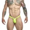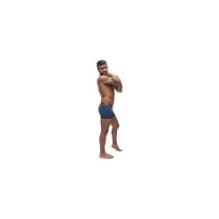 Deze stijl, uit de Avant-Garde-collectie van Male Power, is: een versterkershort met een ondersteunende buidel, een zijdezachte, luxueuze afwerking en een innovatieve tailleband met collage-tekst en merklogo.