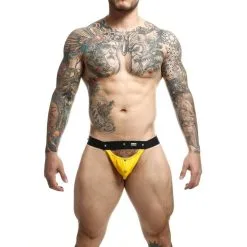 Aan de andere kant is het een jockstrap, speciaal ontworpen om vooraan extra atletische ondersteuning te bieden.
