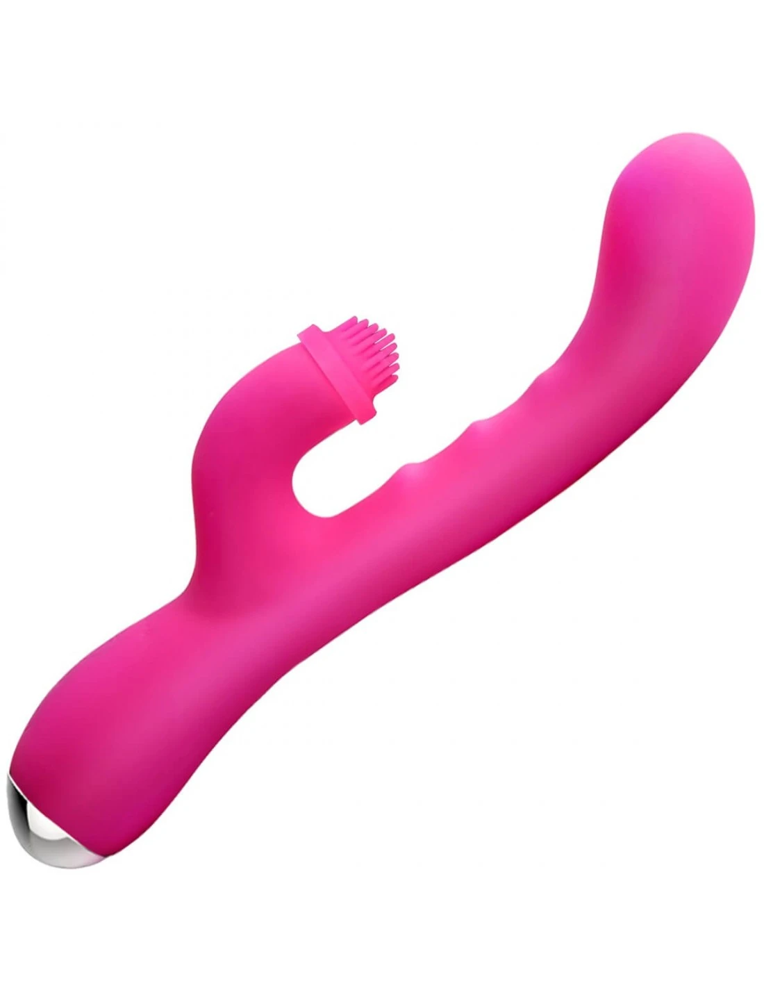 Het ronde borsteltje heeft zachte noppen die de clitoris strelen en stimuleren. Tegelijkertijd wordt de G-spot gestimuleerd door de gebogen top.
