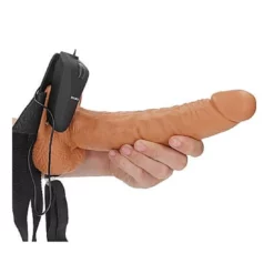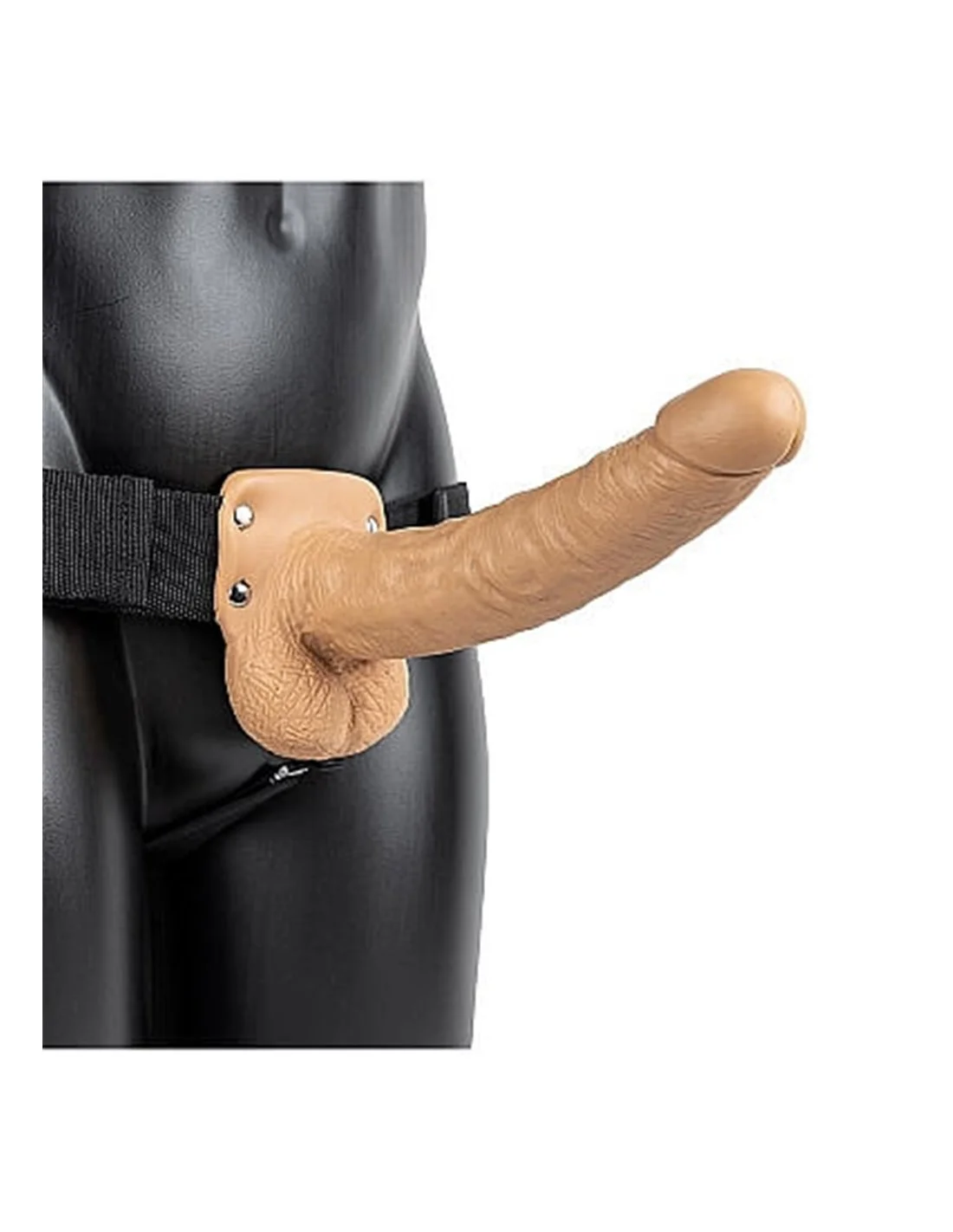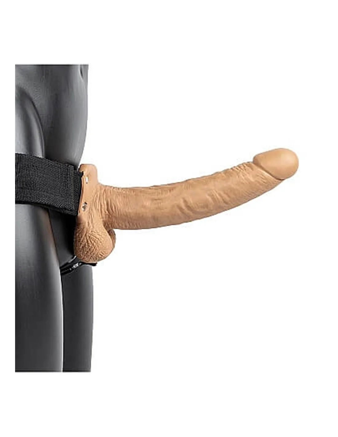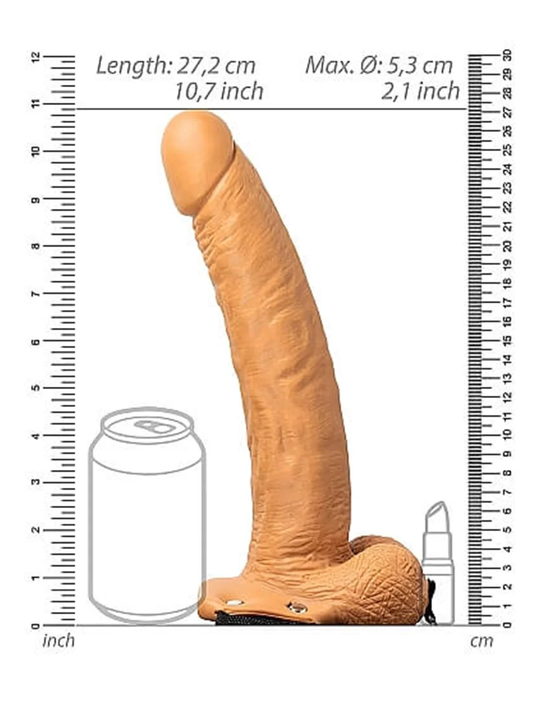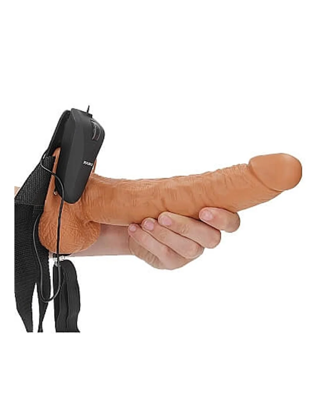 Wees de RealRock-ster die je altijd al wilde zijn met deze vibrerende RealRock Hollow Strap-On met ballen.