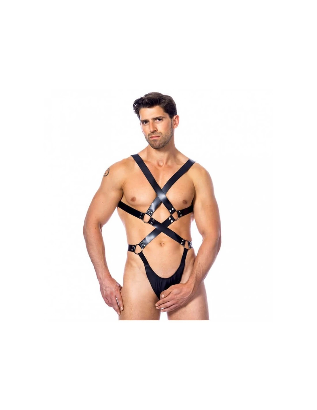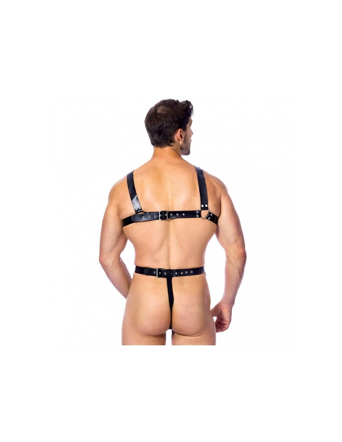 Deze kinky leren body harnas van het merk Rimba is gemaakt van splitleer.