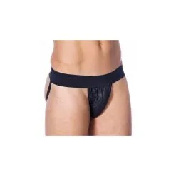 Echt nappalederen Jock Strap met brede elastiekband rond de taille en twee elastische banden onder de billen.
