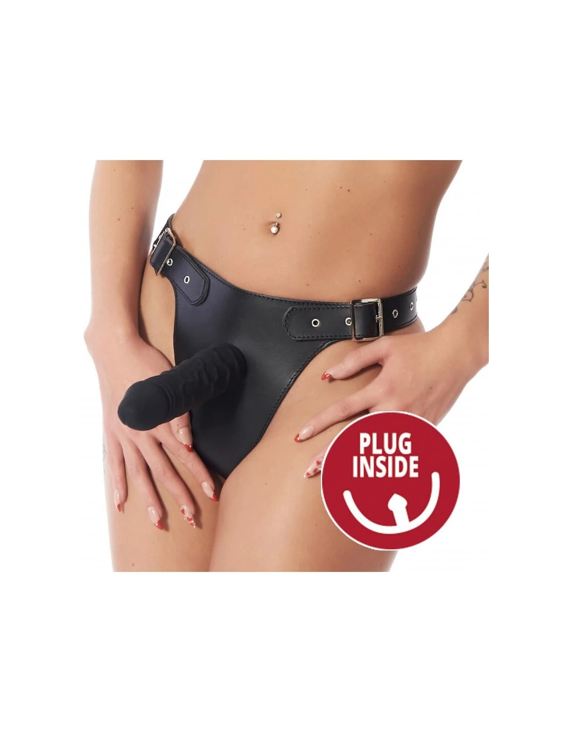 Deze luxe leren voorbinddildo heeft twee dildo’s.