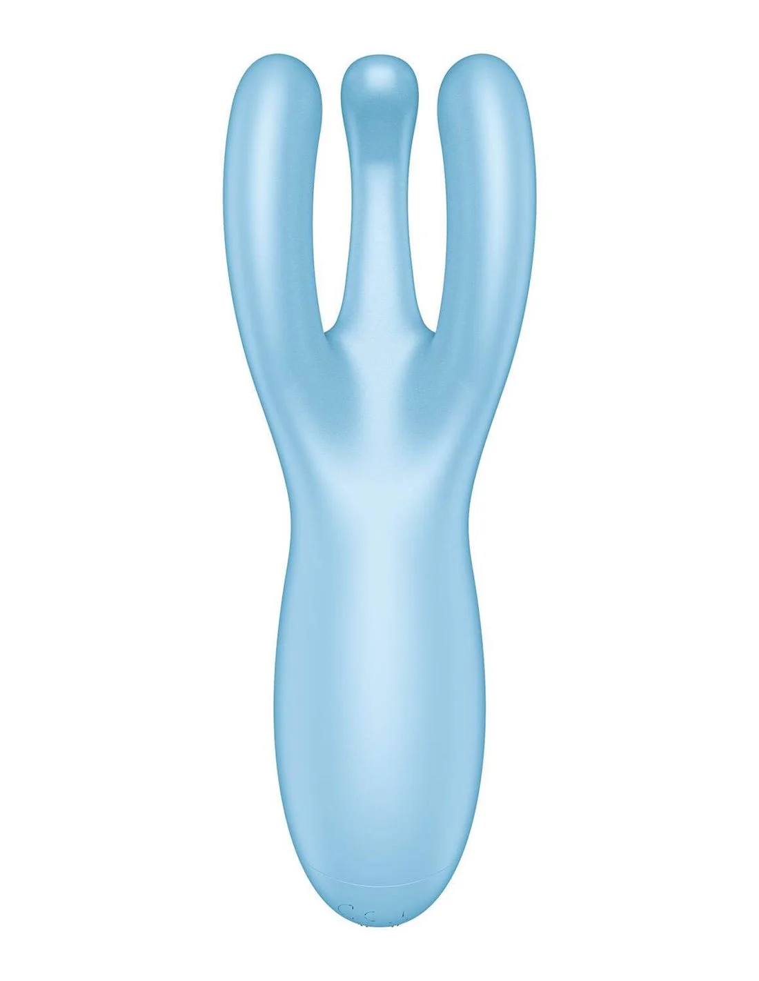 De Satisfyer Threesome 4, die is gemaakt van huidvriendelijke siliconen, heeft ook een motor in elke arm. Terwijl de twee buitenste armen je vulva-lippen masseren, is de middelste arm met zijn prominente punt gericht op je plezierparel en kan naar beneden worden gedrukt voor intensievere stimulatie. Diepe, verreikende trillingen geven je een onbeschrijfelijk bevredigend gevoel!