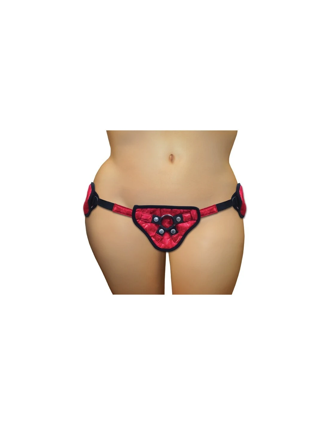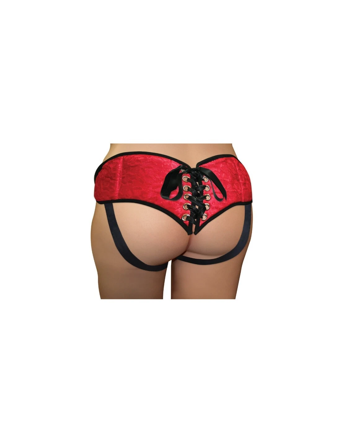 Kruip in deze prachtige, lace up corsetstyle, strapon, gemaakt van rood kant.