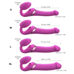 Multi Orgasm kan op alle mogelijke manieren worden gebogen en heeft 3 vibratiestanden en 3 intensiteiten. De strap-on vibrator is uitgerust met 3 motoren: één aan de top van de schacht, één in het inbrengbare, vibrerend ei-gedeelte en één in het begin van de schacht.