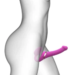De strap-on vibrator is uitgerust met 3 motoren: één aan de top van de schacht, één in het inbrengbare, vibrerend ei-gedeelte en één in het begin van de schacht.