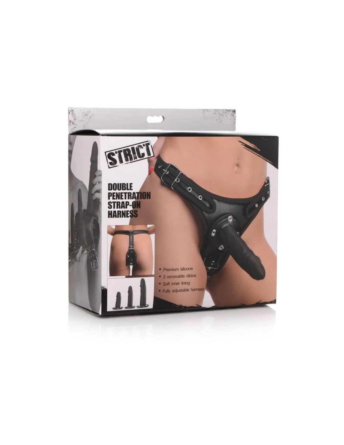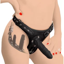 Het harnas wordt geleverd met 3 siliconen dildo’s in verschillende maten en deze zijn onderling wisselbaar zodat jullie meerdere combinaties kunnen uitproberen.