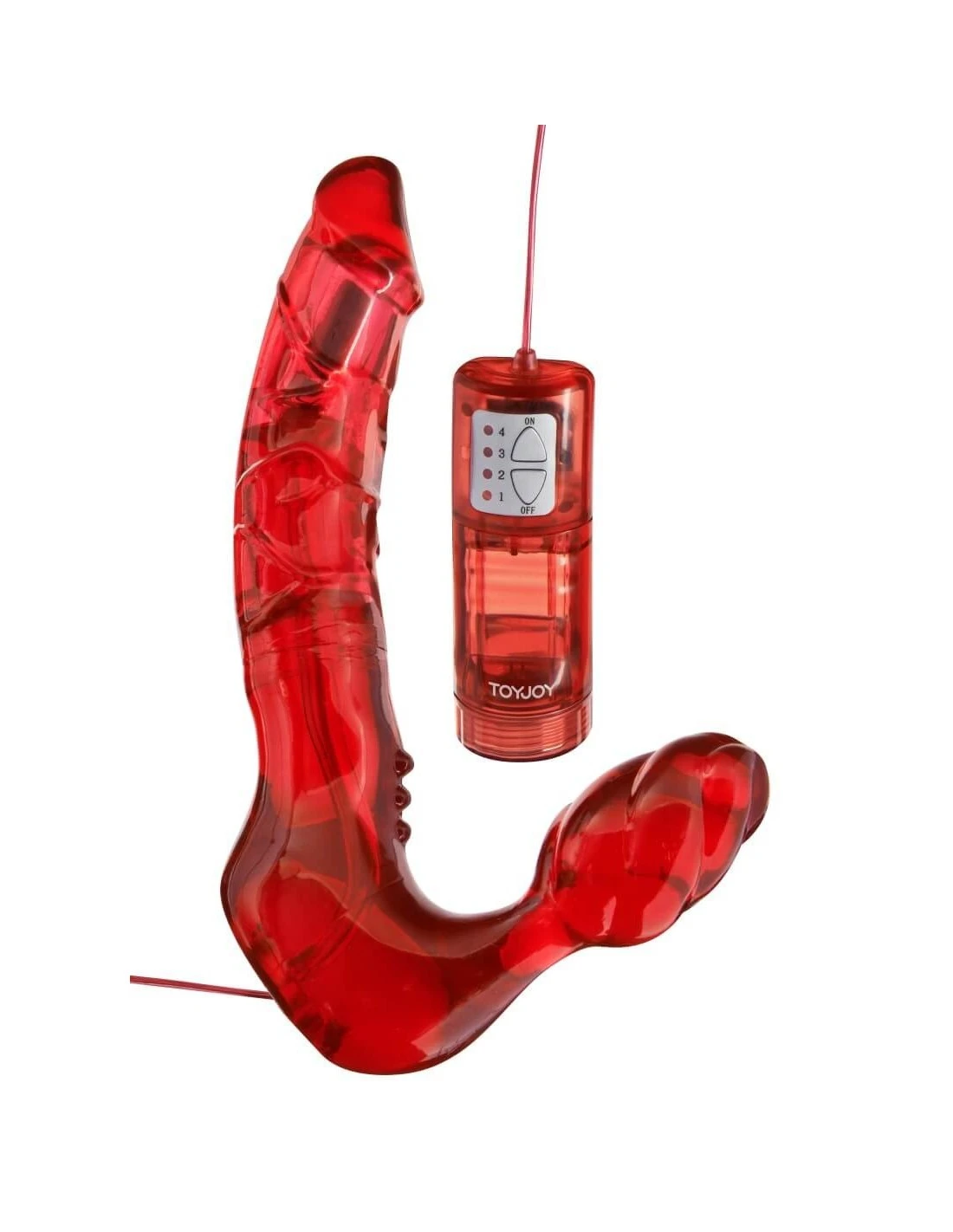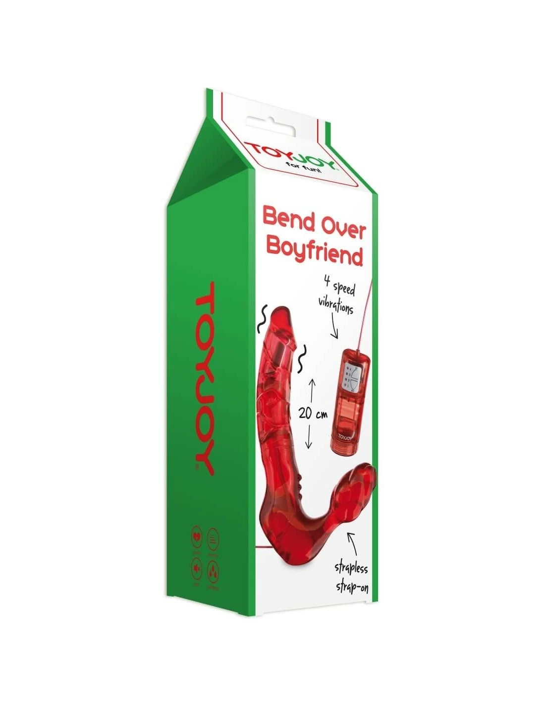 De ToyJoy Bend Over Boyfriend is een rode voorbinddildo met een omvang van 40 millimeter.