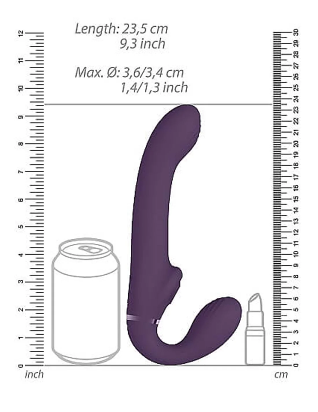 De strapless VIVE047 G-spot strap-on met kietelende luchtdruk technologie doet zeker zijn ding aan beiden uiteinden.