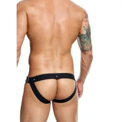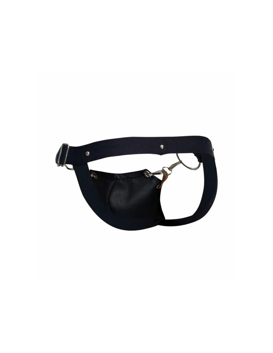 De Snap Jockstrap is gemaakt van sterk kunstleer in strak zwart.