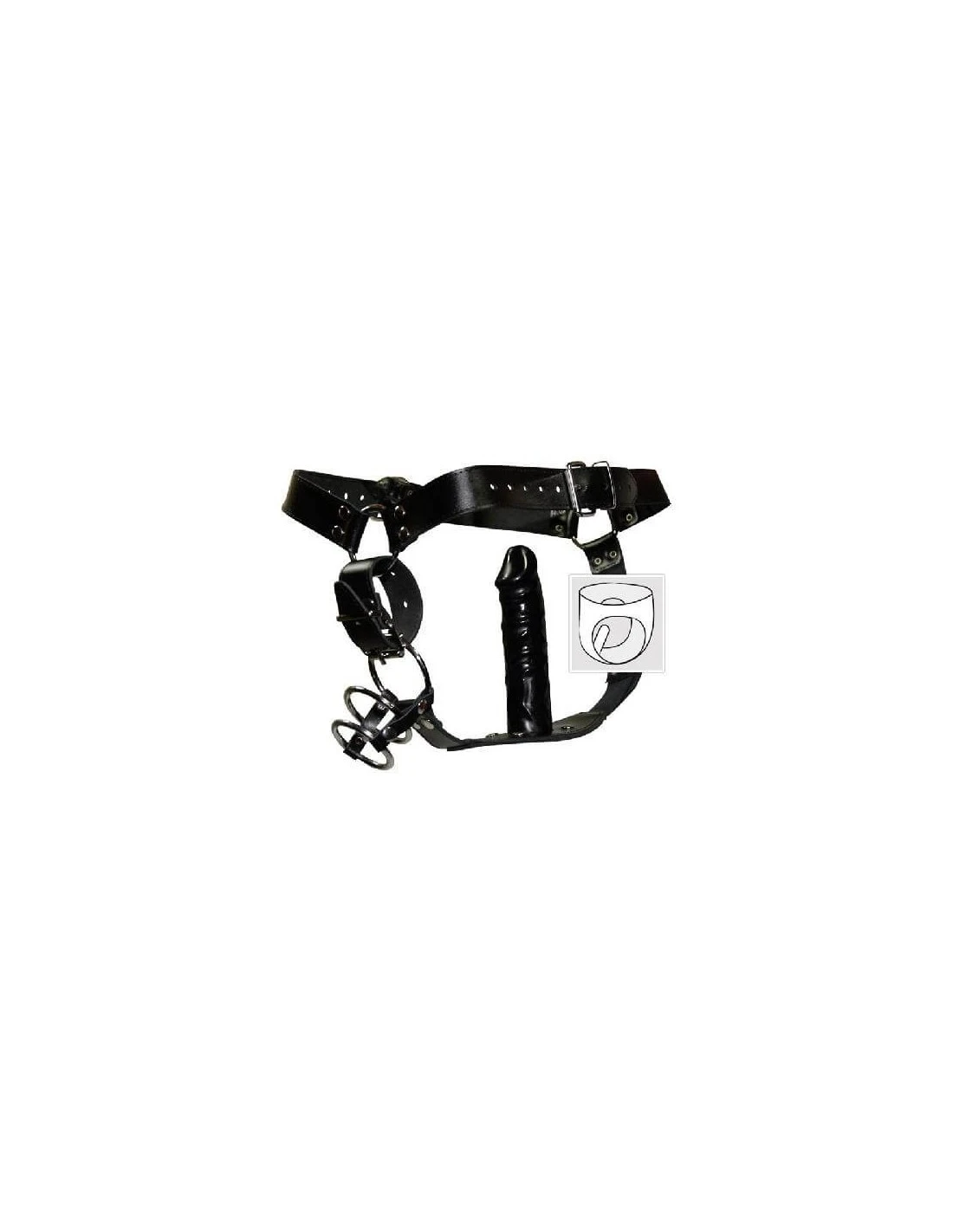 Ook is de ingebouwde anaal dildo van latex (14 cm, Ø 3,5 cm) behoorlijk aanwezig en dankzij de lederen riem ook goed op lengte aan te passen.